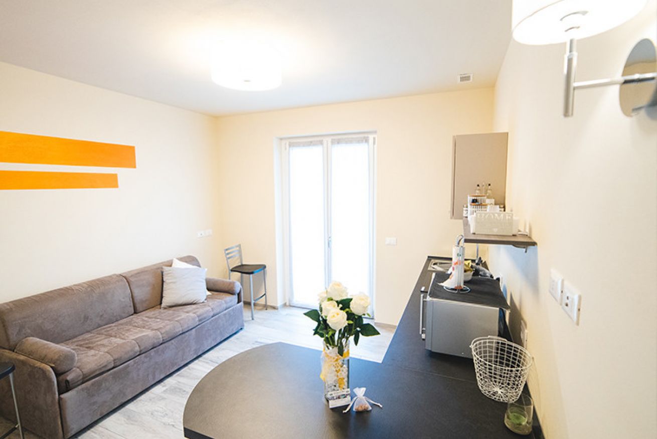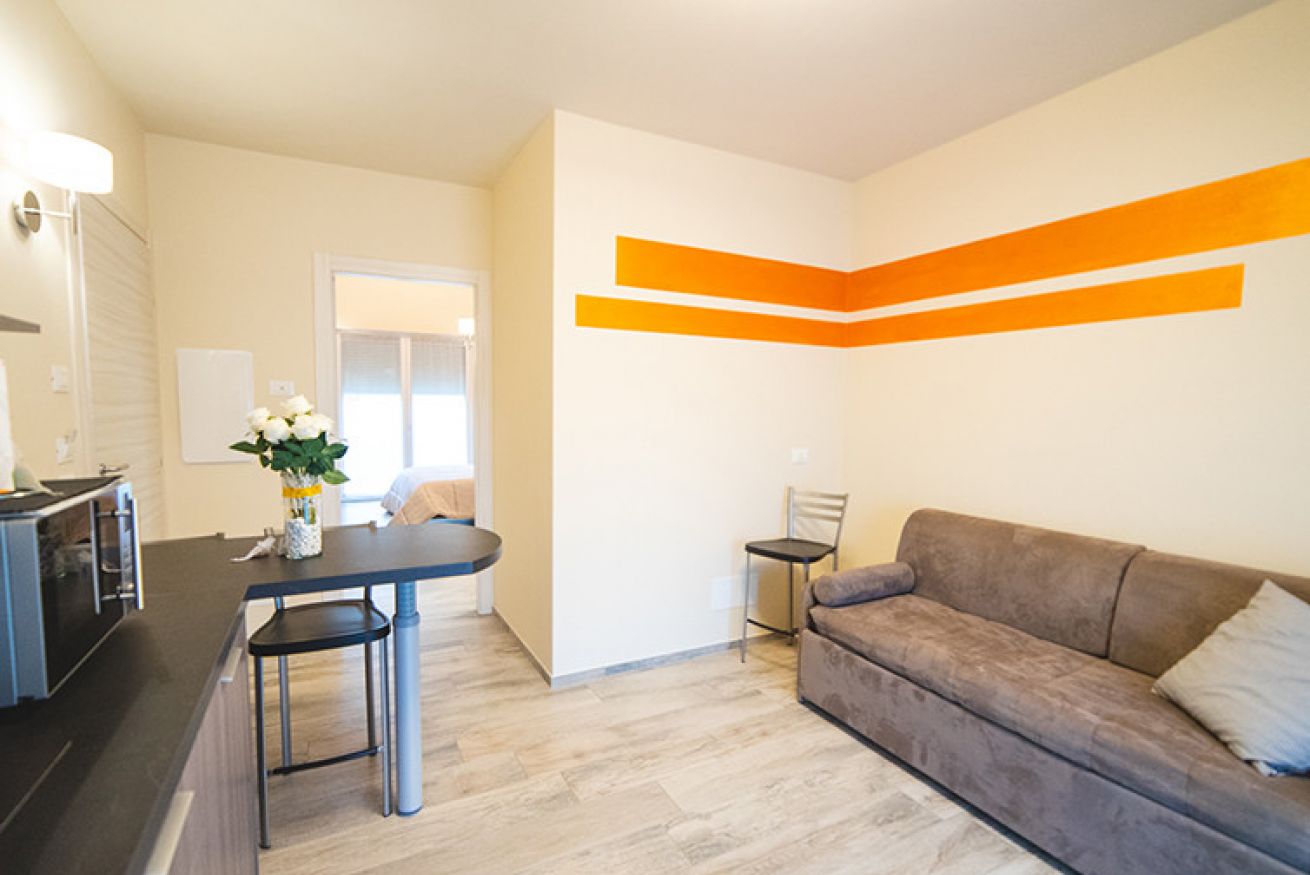 Cucina attrezzata e divano letto, bagno con doccia, camera matrimoniale wi-fi, tv a schermo piatto, due ampi balconi.